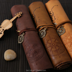 Rotolo di penna e astuccio in pelle di cresta rustica