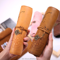 Astuccio in pelle di mucca per il trucco dei pirati con mappa della bussola retrò